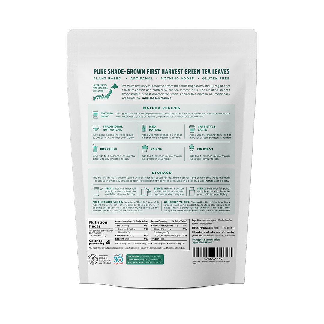 Premium first harvest tea leaves are picked and carefully crafted into our Teahouse Edition Ceremonial Matcha, giving it an exceptionally smooth flavor profile best appreciated when sipping as traditionally prepared tea.